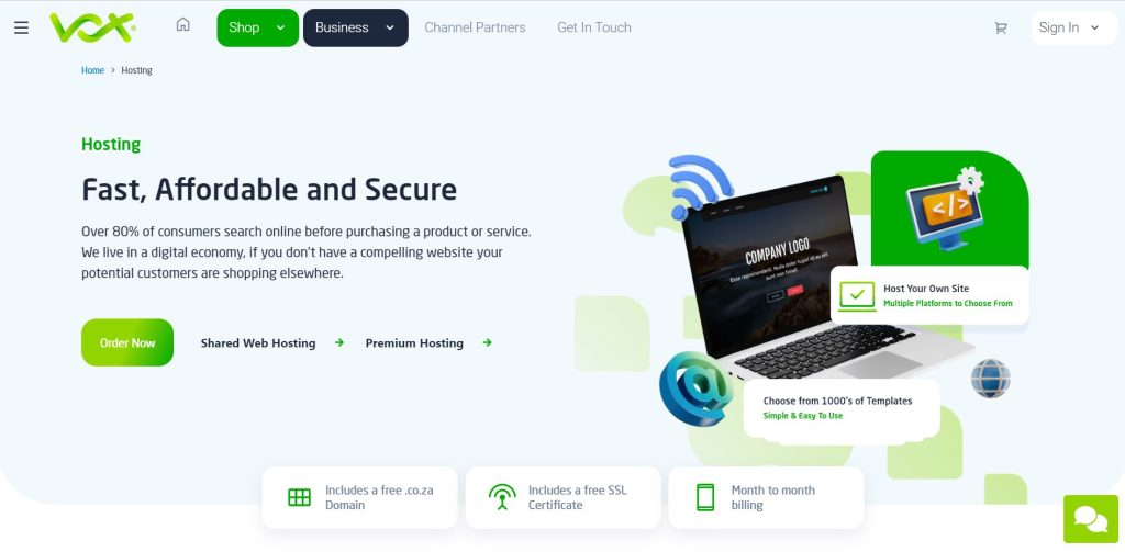 If your business wants to start operating in South Africa or have potential customers there, Vox is an excellent choice of hosting provider. The company has hosting solutions to help you establish an online presence.