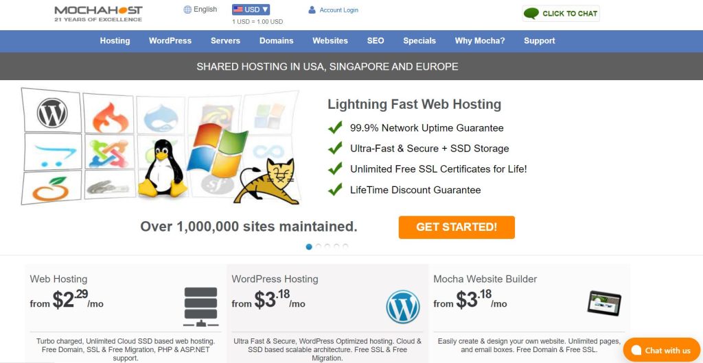 When it comes to its WordPress features, Mochahost offers the best for every value. All plans have unlimited WP websites, server power, Cloud technology, unlimited SSD storage, unlimited free SSL, automatic backups, and premium daily backups.