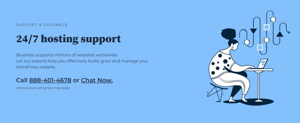 • Knowledgeable Customer Support: Bluehost provides 24/7 customer support via phone, live chat, and email, ensuring prompt assistance whenever you need it.