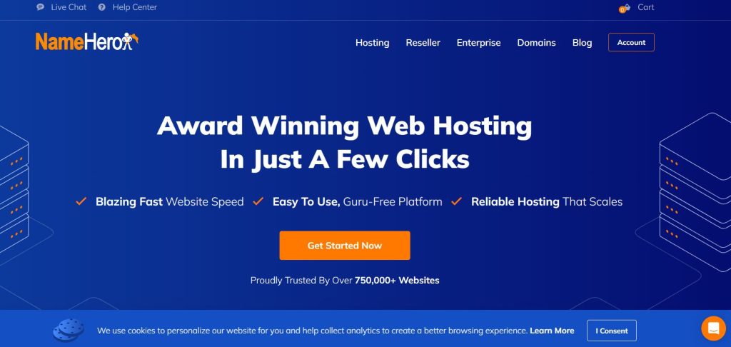 - Exceptional Performance: NameHero has an extensive hosting infrastructure, including LiteSpeed web servers and SSD storage, providing optimal website performance and super-fast loading times.