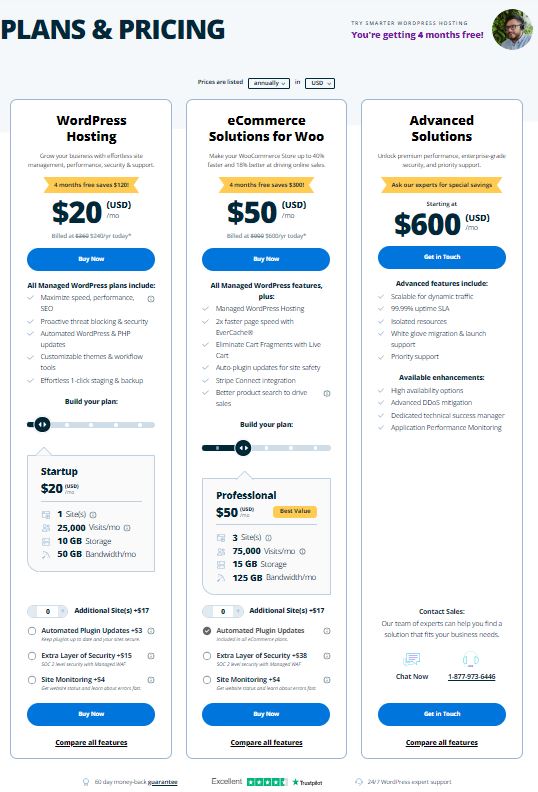 WP Engine’s hosting offers four different WooCommerce plans, which are: