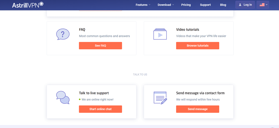 Astrill VPN maintains a comprehensive knowledge and Frequently Asked Questions (FAQs) section on its website. There, you will find answers to frequently asked questions, programming tips, troubleshooting tips, and other helpful resources. This self-service allows you to find solutions to any issues you encounter without having to contact customer support directly.