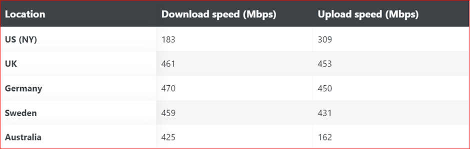 Except in the United States, the IKEv2 protocol used by Atlas VPN performed well in many regions. Notably, download rates in Australia were almost the same as WireGuard’s. Generally, the protocol was able to maintain about 80% of the initial speed, which in my opinion is impressive.